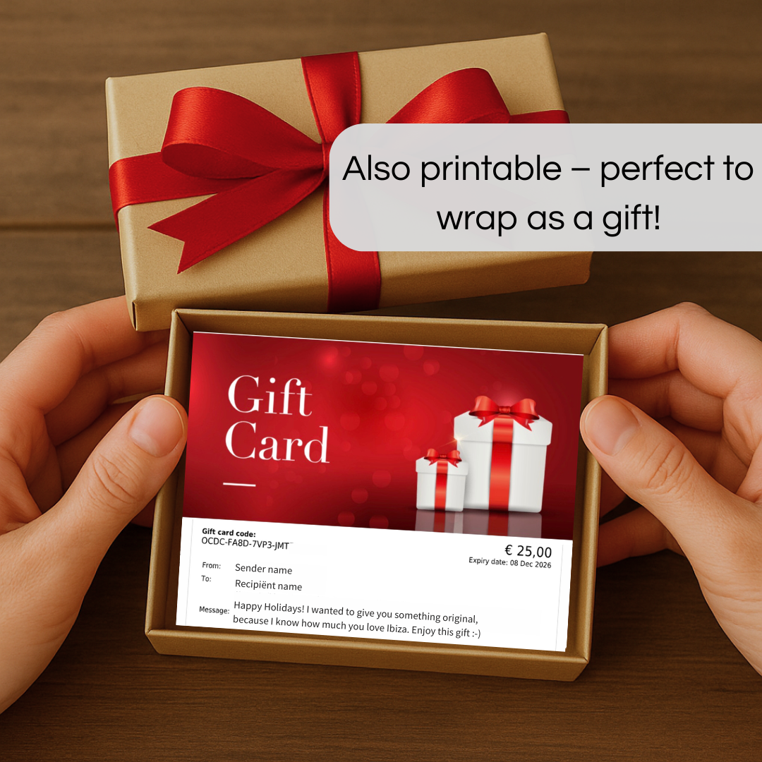 Simply enter your own email address in the “Recipient email” field at checkout. After your order, you’ll receive the gift card as a PDF in your inbox. You can then print it, put it in a nice envelope or gift box, and hand it over in person.